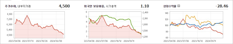 NI스틸의 현재 주가는 4,500원으로 전일 대비 -10원의 하락세를 보이고 있습니다. 주주 현황을 살펴보면 문배철강(외 6인)이 지분의 58.95%를 소유하고 있습니다. NI스틸은 금속 및 광물 기업으로서, 현재 주가는 4,500원입니다. 시가 총액은 1,291억 원이며 발행 주식수는 28,600,117주입니다. 외국인 보유 비중은 1.10%이며, 장중 거래량은 147,262주를 기록했습니다. 또한, 매출액은 3829억 원을 달성했습니다.