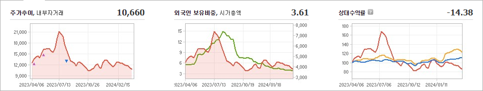 화신의 현재 주가는 10,660원이며 전일 대비 -110원의 변동을 보여주고 있습니다. 화신의 주주 구성을 살펴보면 글로벌오토트레이딩(외 16인)이 지분의 50.41%를 소유하고 있습니다. 화신은 자동차 부품 기업으로서, 현재 주가는 10,660원입니다. 화신의 시가 총액은 3614억 원이며, 발행 주식수는 34,920,410주입니다. 외국인 보유 비중은 3.61%이며, 장중 거래량은 293,876주를 기록하였습니다. 또한, 화신은 매출액으로 18,028억 원을 달성하였습니다.