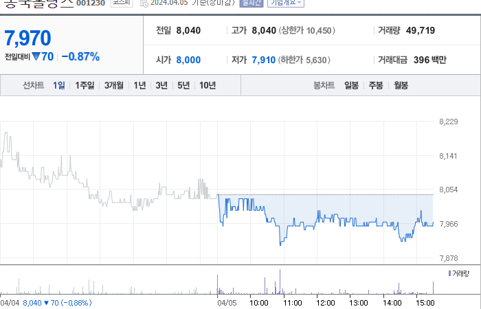 동국홀딩스 주가 분석