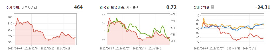 티웨이홀딩스의 현재 주가는 464원이며 전일 대비 -2.52원으로 하락하였습니다. 주주현황을 살펴보면 예림당(외 3인)이 지분의 46.90%를 소유하고 있습니다. 티웨이홀딩스는 건축자재 기업으로, 현재 주가는 464원이고 시가 총액은 518억 원입니다. 발행 주식수는 111,611,693주이며 외국인 보유 비중은 0.72%입니다. 장중 거래량은 126,926주를 기록했고, 매출액은 78억 원입니다.