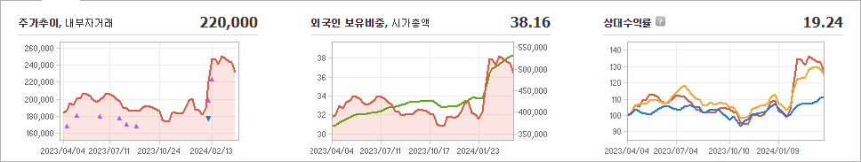 현대차 주식의 현재 가격은 220,000원이며, 전일 대비 -7,500원 하락했습니다. 주요 주주인 현대모비스(외 10인)은 지분의 29.68%를 소유하고 있습니다. 현대차는 자동차 기업으로, 현재 주식 가격은 220,000원입니다. 시가 총액은 45조 6908억 원이며, 발행 주식수는 209,416,191주입니다. 외국인 보유 비중은 38.16%이며, 거래량은 1,802,613주입니다. 매출액은 1조 6266억 원을 달성했습니다.